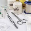 Types of bandages include roller, triangular, four-tailed, many-tailed (Scultetus), quadrangular, elastic (elastic knit, rubber, synthetic, or combinations of these), adhesive, elastic adhesive, newer cohesive bandages under various proprietary names, impregnated bandages (plaster of Paris, waterglass [silica], starch)